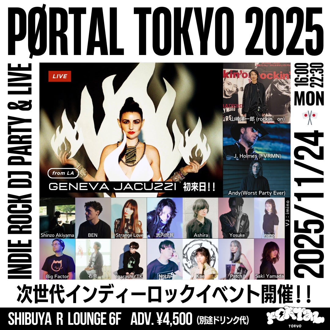 次世代ロックDJイベント『PØRTAL』にLA重要アーティストGeneva Jacuzzi初来日!ゲストDJ「rockin'on」総編集長・山崎洋一郎。「東御プロテインスイーツ」無料配布も