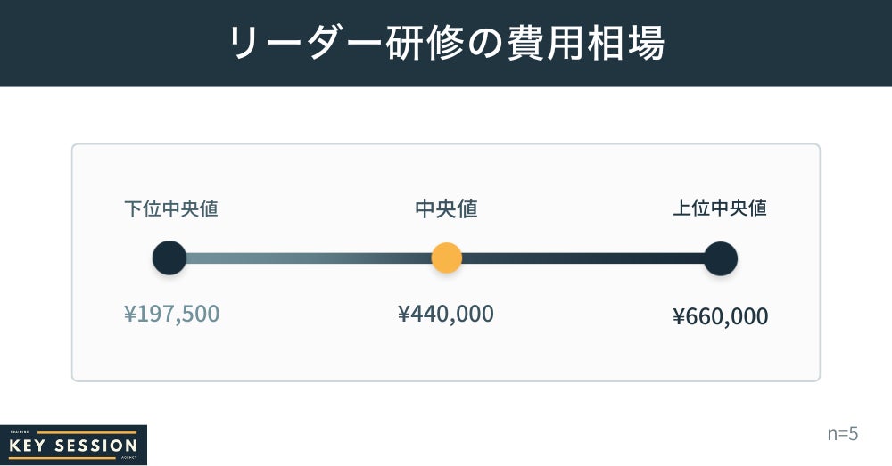 社員研修のマッチングプラットフォームであるKeySessionを運営する株式会社東邦メディアプランニング(代表取締役:金三貴)は、過去実施した研修のデータをもとに集合研修における費用相場を調査しました。集合研修全体の費用相場は約25万円となり、中でもリーダー研修の中央値が44万円と突出していることがわかりました。