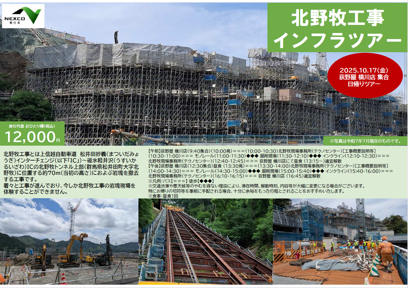 ラストチャンス!10月17日(金)催行 上信越道 北野牧工事インフラツアー 販売開始!!