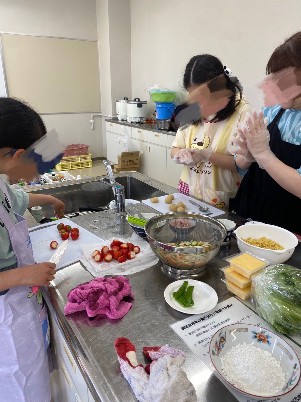 郷土料理「肉もっそ」に挑戦。親子で賑やかに調理し、いちご大福にもチャレンジしました。
