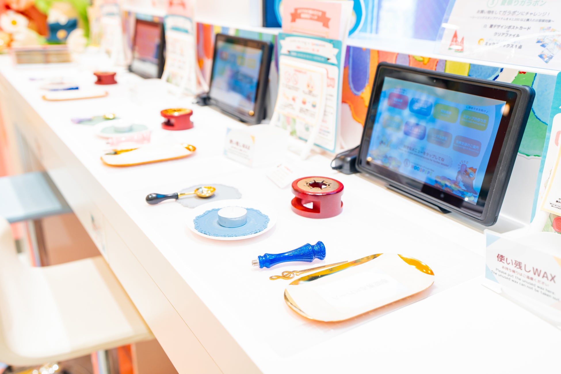 時間制で、店内の道具や材料(ワックス)を自由に使い、自分の好きな色で「初音ミク」のシーリングスタンプ作りを楽しむことができます。