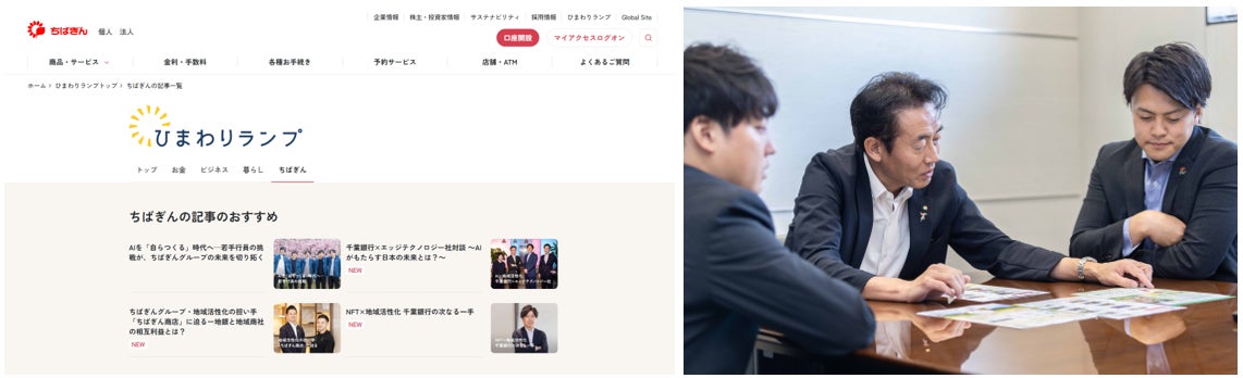 「ちばぎん」カテゴリでは、ちばぎんグループが「銀行」という枠から飛び出し、千葉県の地域活性化のために取り組んでいる施策について紹介。生成AIやクラウドファンディングの活用、地方創生など、新たな取組みに挑戦し続けるちばぎんグループの様子をお届けするページです。