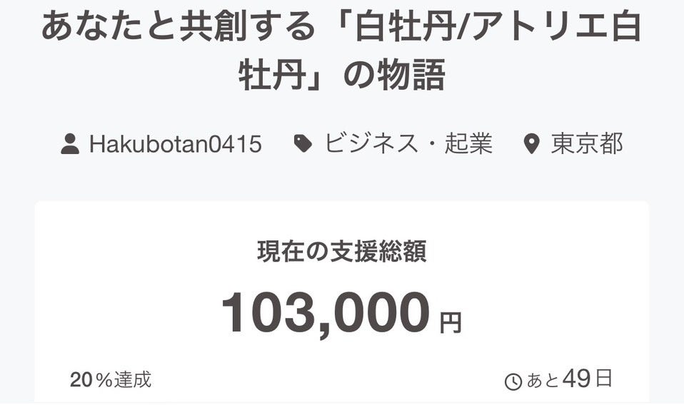 ジュエリーブランド**「白牡丹(HAKUBOTAN)」は、クラウドファンディングプラットフォーム