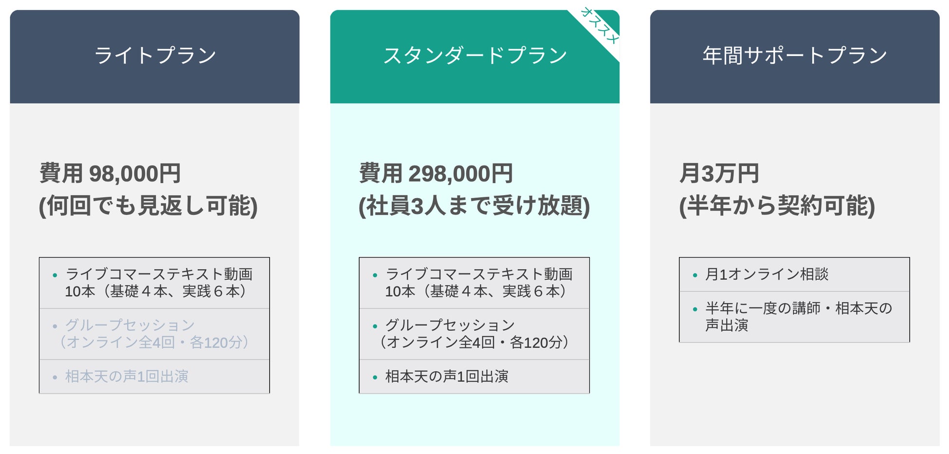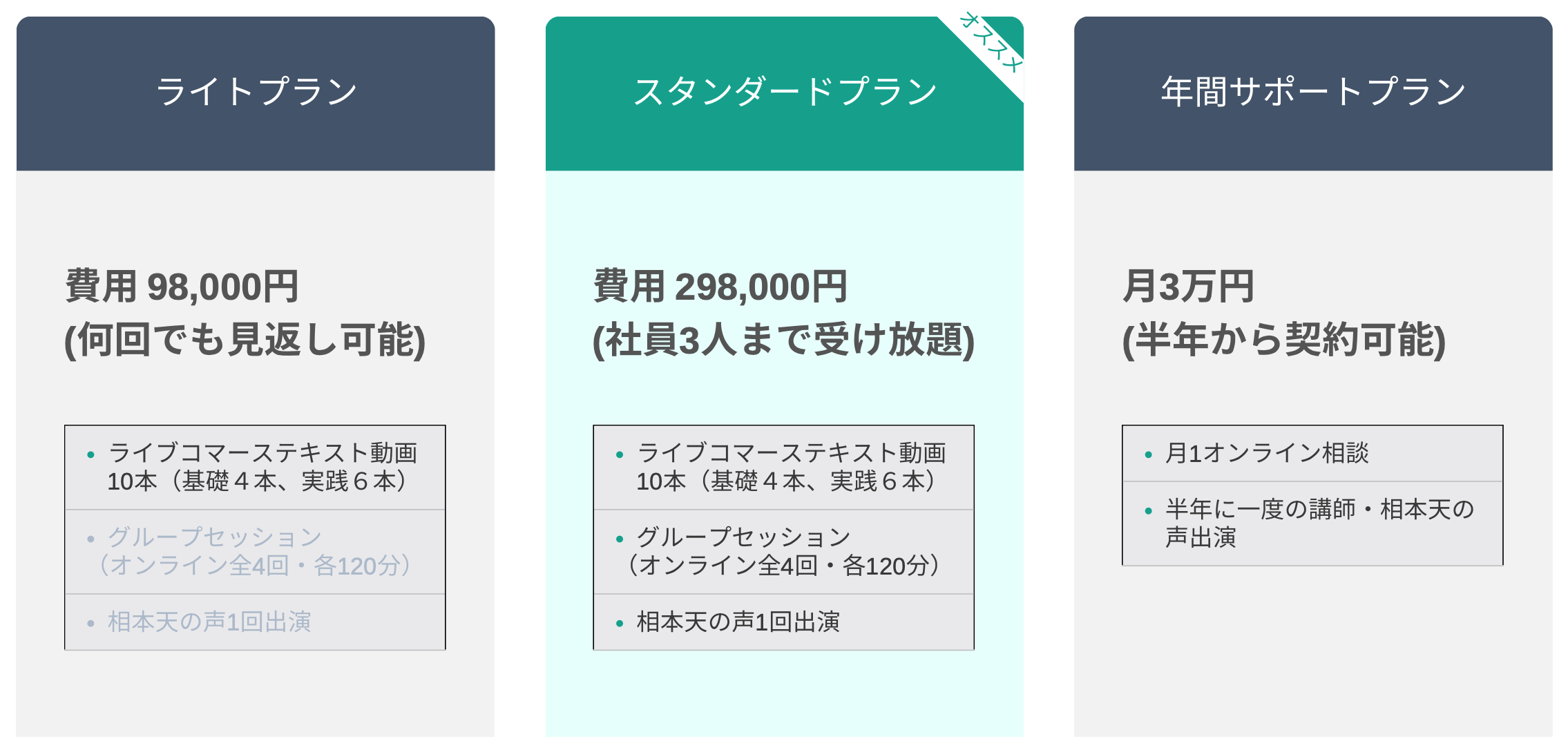 スタンダード、年間サポートプランでは相本が無料で出演いたします。