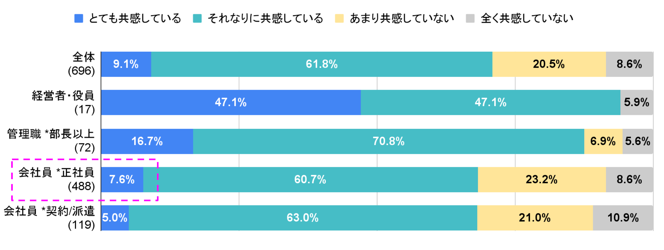 ・企業理念へ強く共感、意識する一般社員は1桁台と低水準。