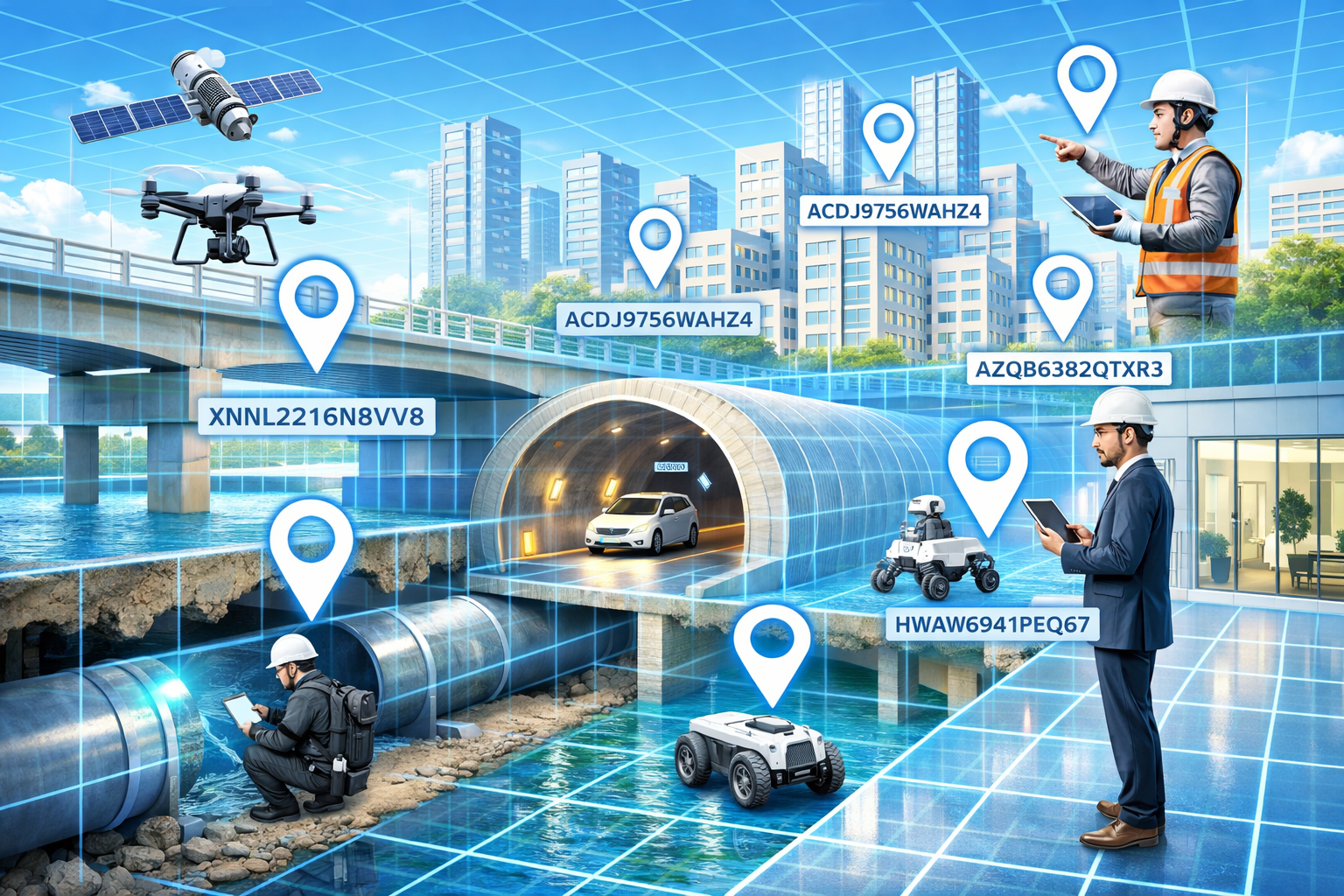 例えば、図面上で指定した“場所のID”をそのまま現場で共有し、ロボットが同一地点へ移動して作業を実行する利用に加え、橋梁・トンネル・上下水道などGNSSが届かない範囲や、屋内外をまたぐインフラ点検において、点検箇所を人・ロボット・システム間で正確に一致させる、といった利用が想定されます。