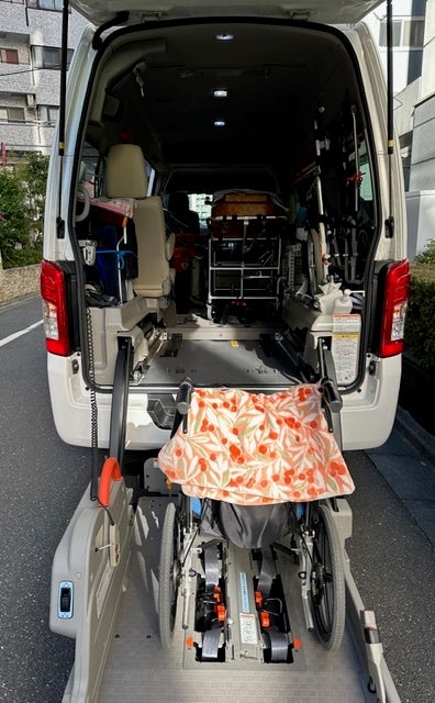 ケアタクシーは、資格保有者が乗降をサポートし、車椅子やストレッチャーのまま乗車でき、車両車内に医療用酸素やAEDなど医療処置を行なうための機器が用意されています。