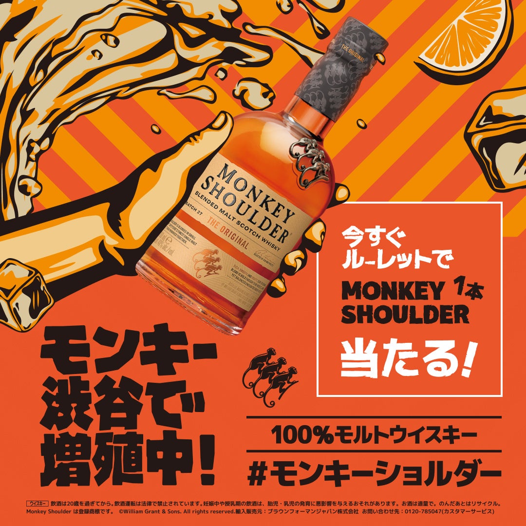 アメリカに本社を置く、世界有数のスピリッツ会社であるブラウンフォーマン社の日本法人ブラウンフォーマンジャパン株式会社(本社:東京都港区、代表取締役社長:アーロン・J・マーティン)が日本における正規販売代理店として展開する、世界初のミキシング・ブレンデッドモルトウイスキー「モンキーショルダー」は、ボトルの肩に乗ったブランドのアイコンである“モンキー”をテーマにした期間限定キャンペーンを実施いたします。