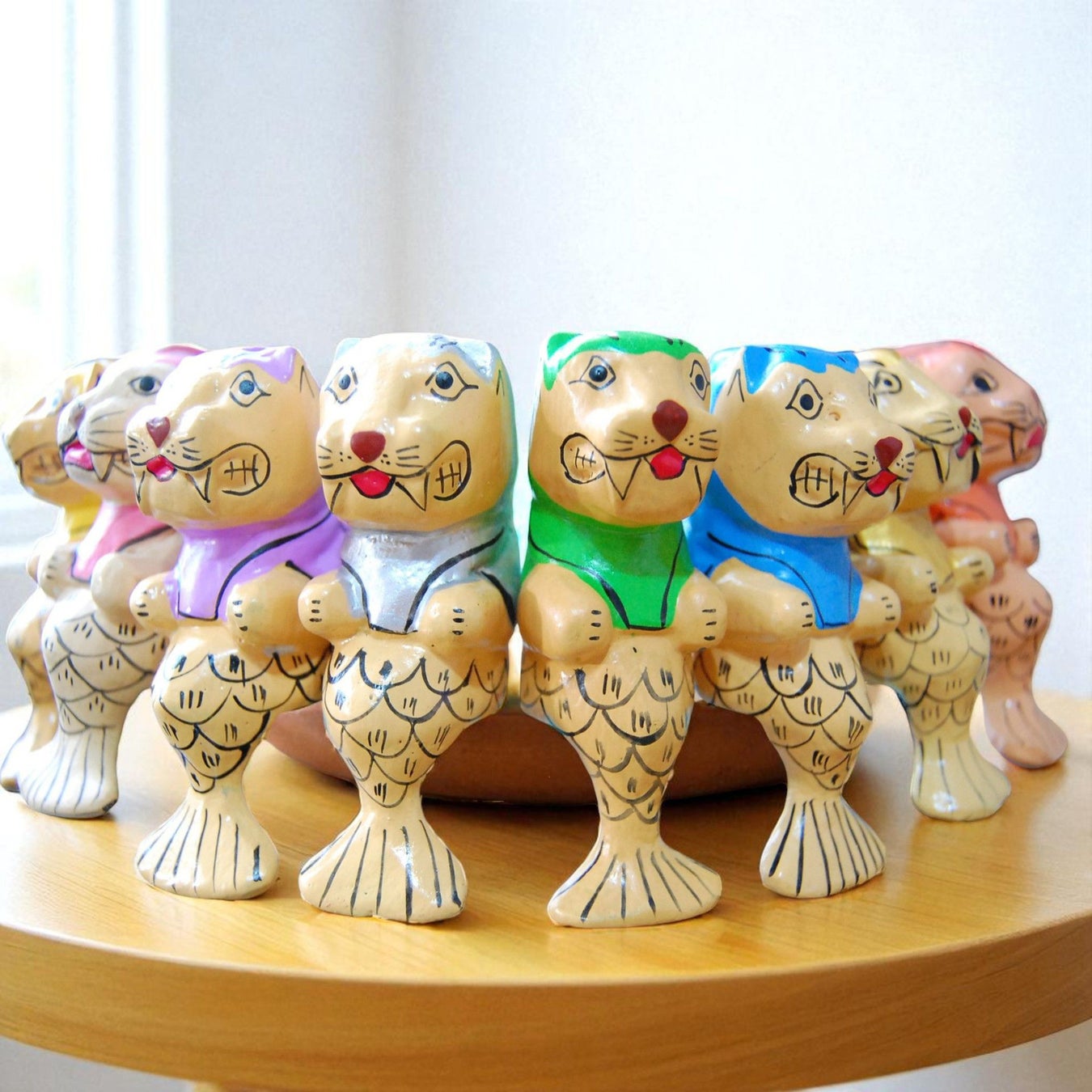 メリッサ雑貨のマーライオンシリーズは、シンガポール土産・雑貨の定番。口からお香を吐き出すインセンススタンド(お香立て)や、職人手描きの「ぶさかわ」木彫りは特に人気で、木彫りや箸置きはばらまき土産としても長年支持されています。
