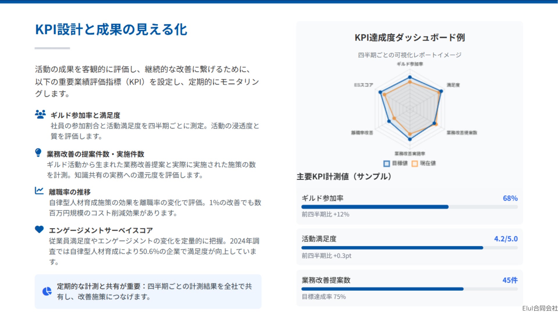 Elul合同会社は、「人の知を、組織の力に変える」をミッションに掲げ、人材育成と組織開発の両面から企業の成長を支援しています。