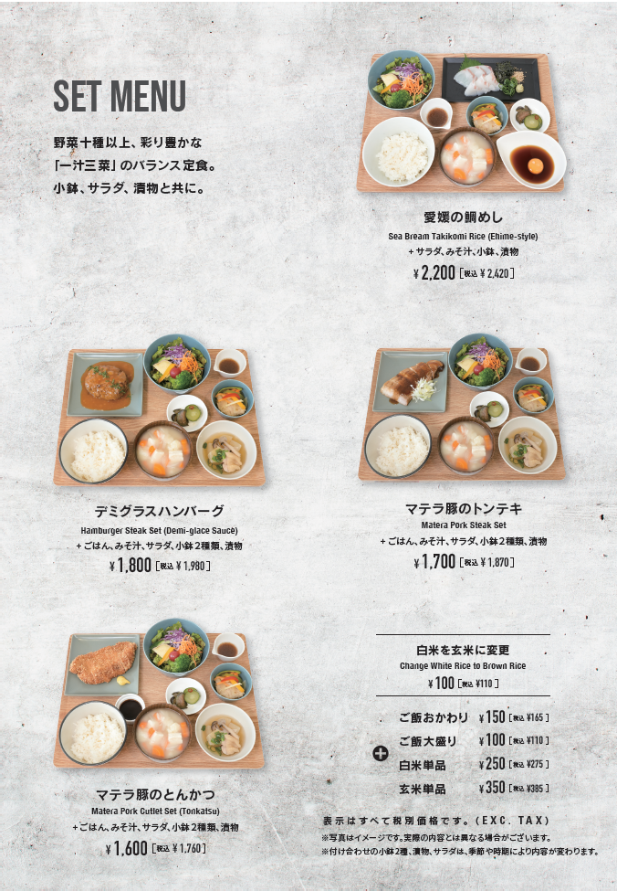 愛媛の生麦みそを使ったみそ汁を含む一汁三菜の定食、愛媛の鯛めし定食も登場!