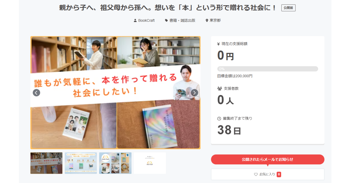 また、本サービスの普及に向けて、クラウドファンディングプラットフォーム「CAMPFIRE」にて応援プロジェクトを2025年10月15日(水)より公開いたします。支援者はプロジェクトを通じて「自分や家族の物語を本にする体験」をCAMPFIRE特別価格でご利用になれます。