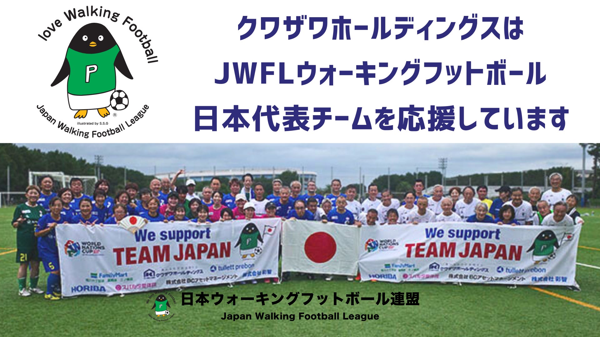 クワザワホールディングスはJWFLウォーキングフットボール日本代表チームを応援しています。