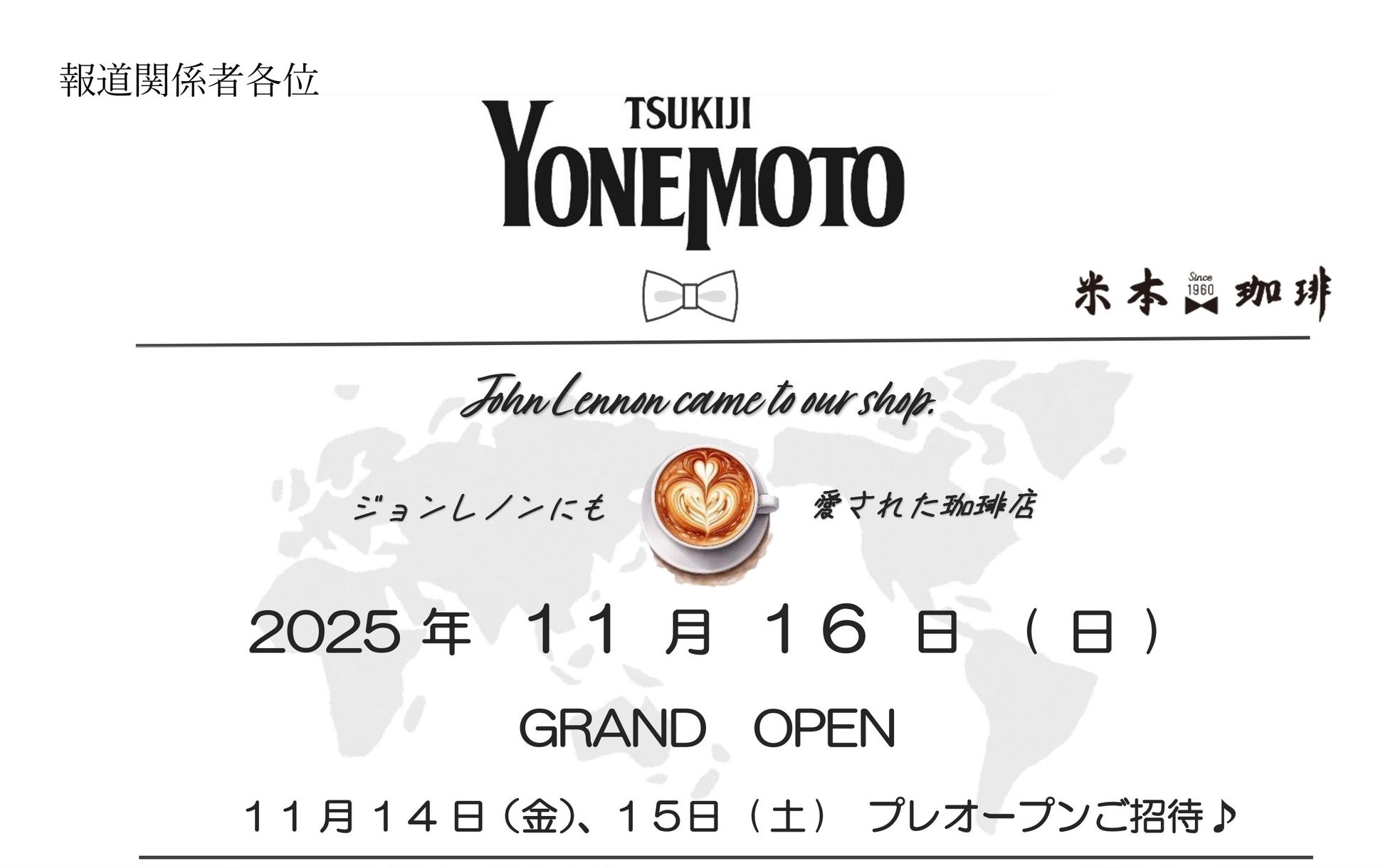ジョン・レノンさんやオノヨーコさんにも愛された珈琲店♪プレオープンにご招待♪11月14日 (金)、15日 (土)