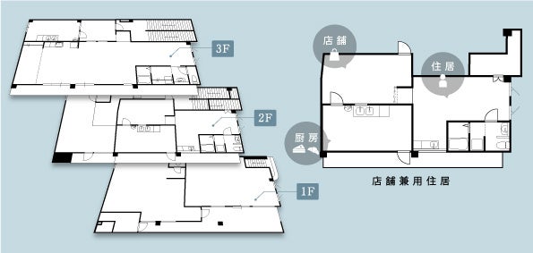 厨房(菓子製造業許可申請可)・販売スペース付き兼用住居(2区画)