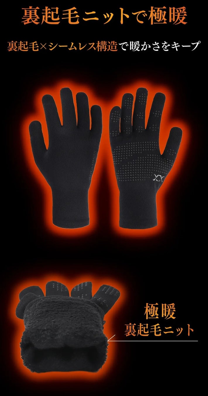 雨や雪の日でも快適に使える、防水×透湿×保温×スマホ操作対応の高機能ニットグローブ。通勤や自転車、アウトドアなど、冬のあらゆるシーンを快適にサポート。