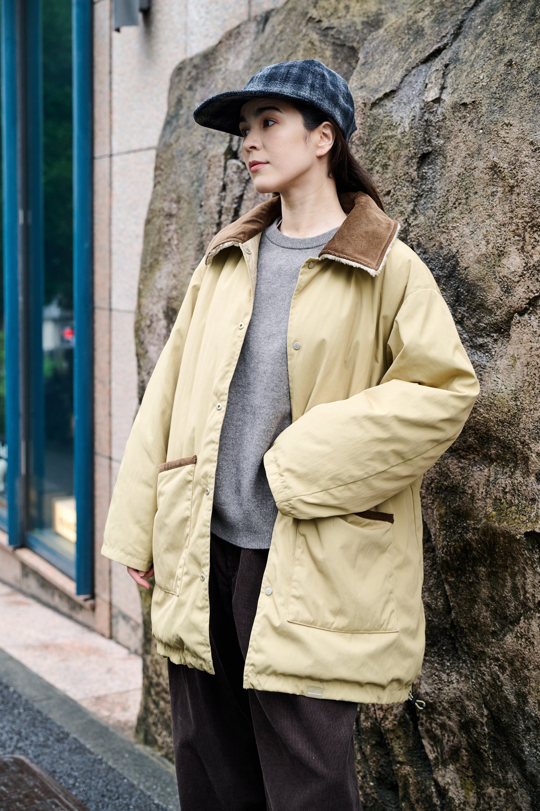 クラシックな襟付きデザインが印象的な、今季注目のミドル丈アウター。表面はマットな質感のナイロン、裏面は軽量で柔らかな素材を使用、襟もコーデュロイとボアの切り替え、両面の印象が全く異なるリバーシブル仕様がポイント。ボリュームを抑えた設計で、街にも馴染むクリーンな佇まい。
