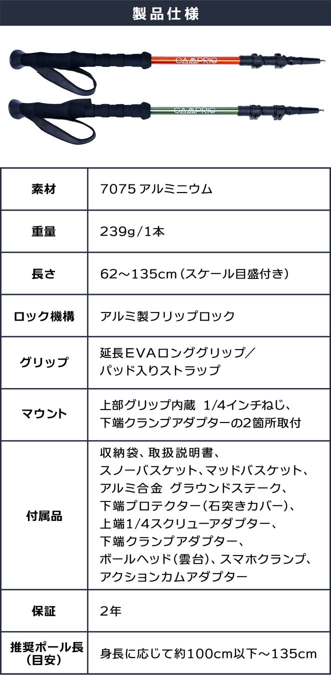 商品紹介用弊社URL:https://promotion.beachwoodtrading.co.jp/camperig-selfie-trekking-poles/