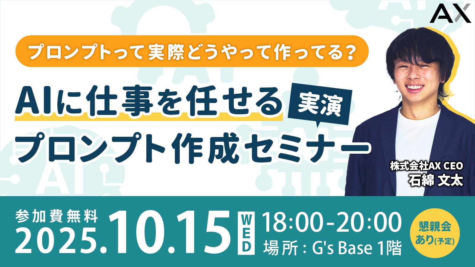 【10/15開催】株式会社AX代表・石綿文太、G's ACADEMYセミナー登壇。最新AIプロンプトテクニックについて語る