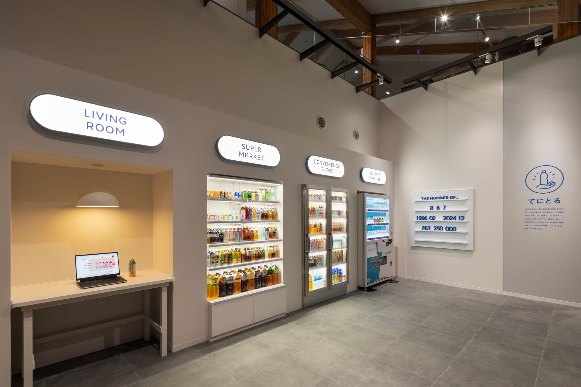 飲料がつくられ、皆様のもとへ届くまでを4つのzoneでご紹介しており、オリジナルラベルの作成を体験することができます。カフェスペースでは、当社が扱う商品約30種類以上の飲料の中から「試飲体験」をご案内しています。