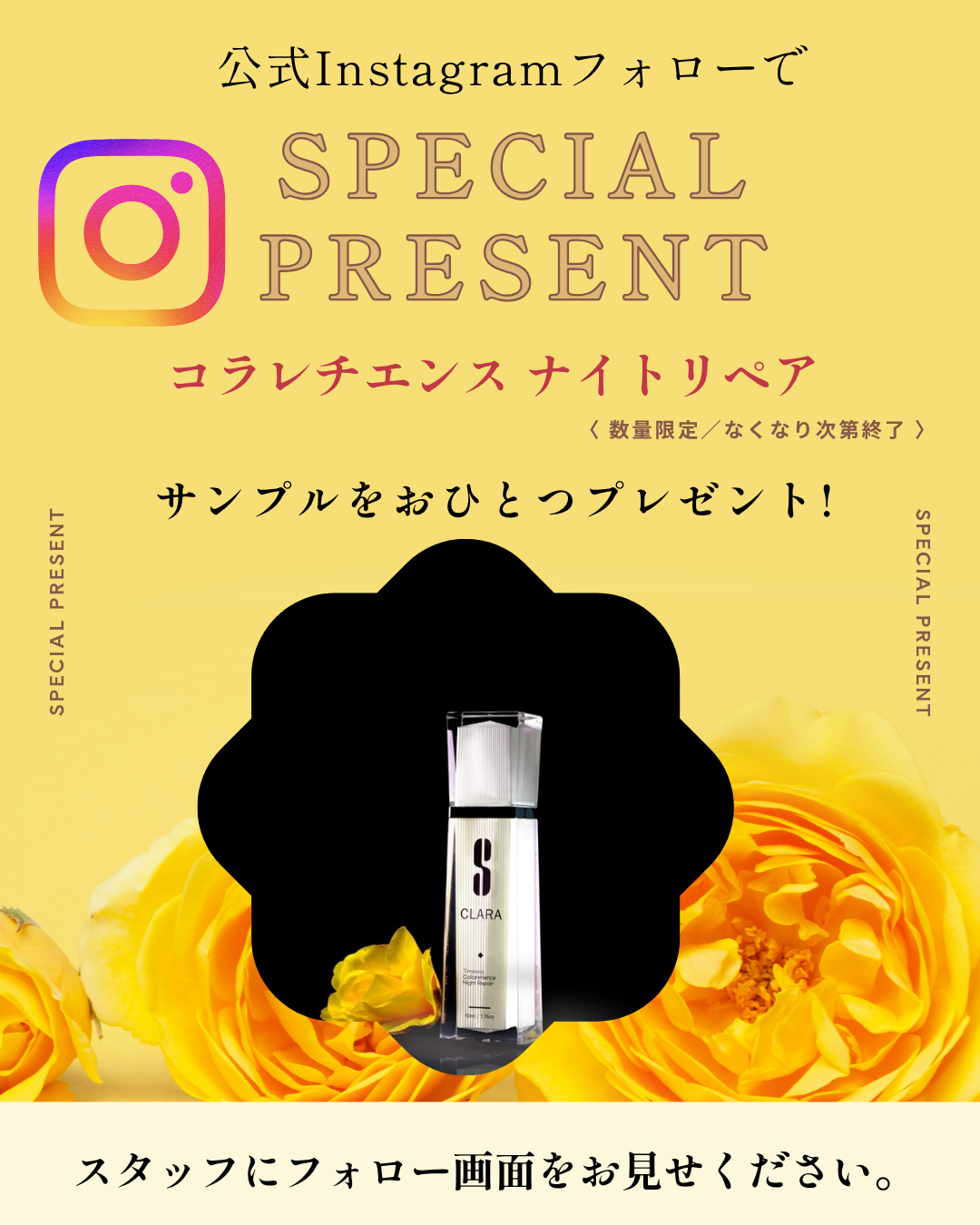 当日会場でエスクララ公式Instagramフォローでレチノールナイトクリーム「コラレチエンス」サンプル贈呈