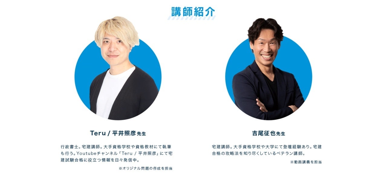 大手資格学校や大学講師として活躍するカリスマyoutuberやプロ講師陣が監修。“モチベーション維持こそが合格の鍵”という理念のもと、わかりやすい講義動画と丁寧な解説付き問題で受験生をサポートします。