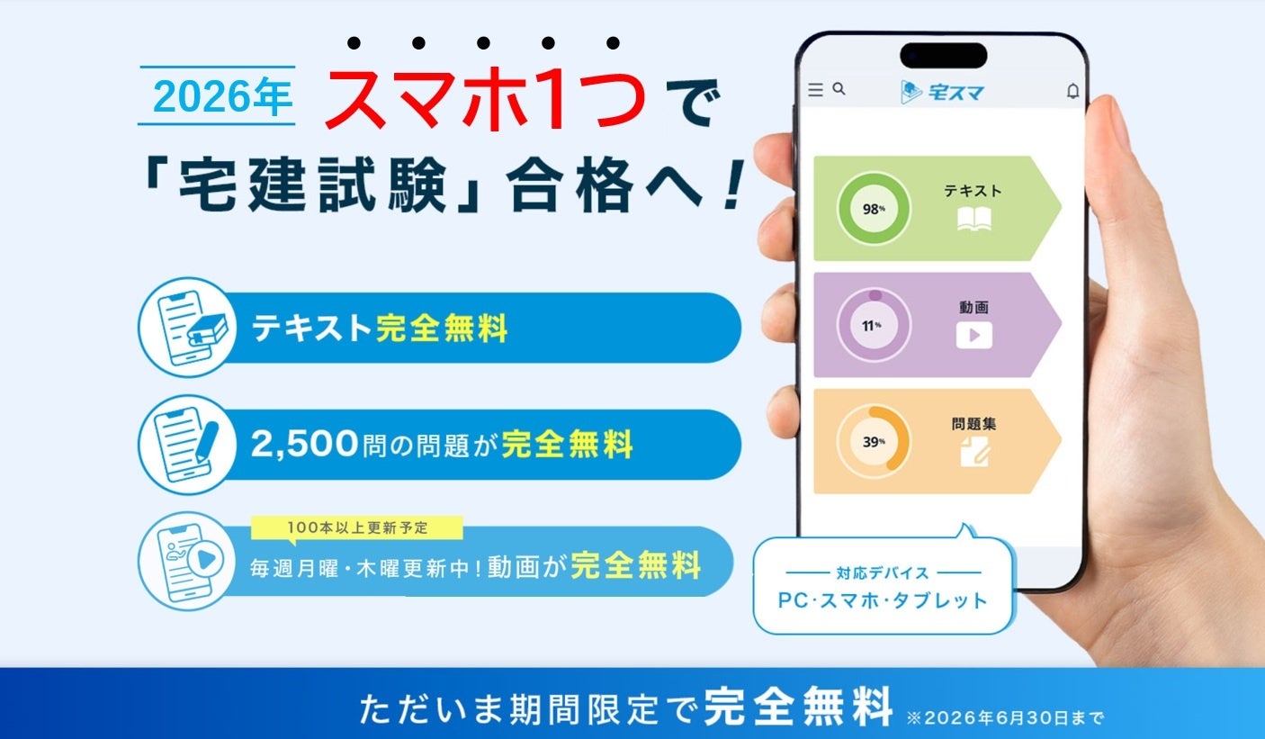 業界初⁉「テキスト・動画・問題」が連動!宅建合格WEBアプリ「宅スマ」始動!!