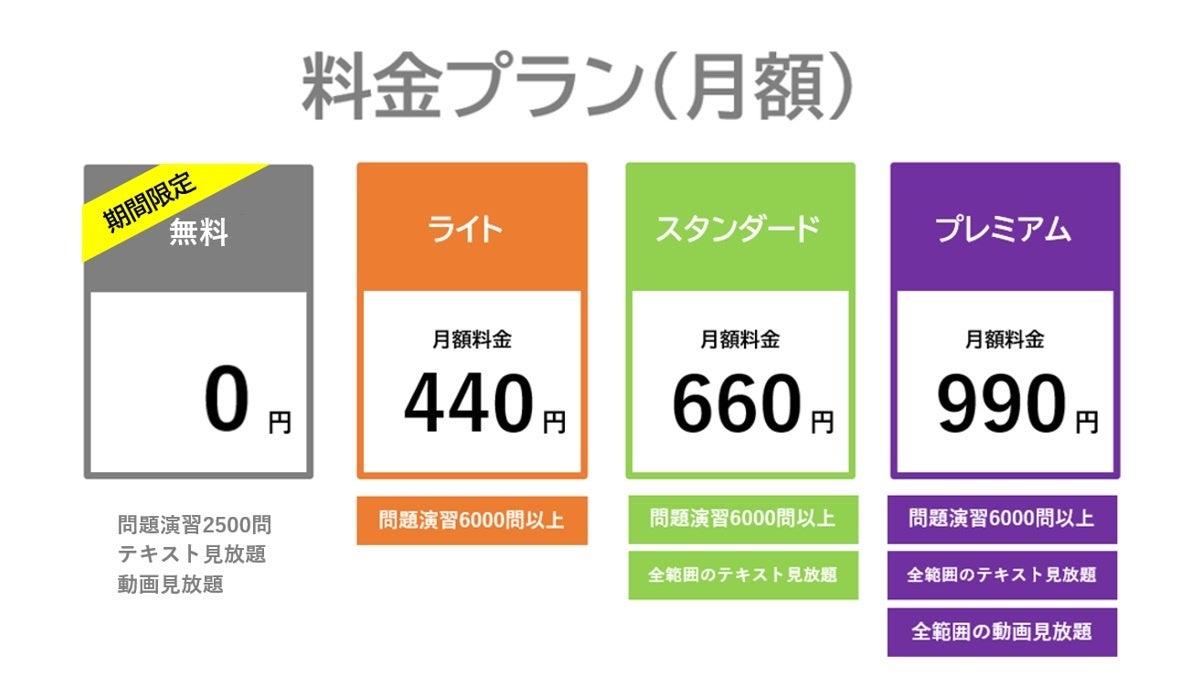 スタンダードプラン(660円/月):問題+全テキスト閲覧