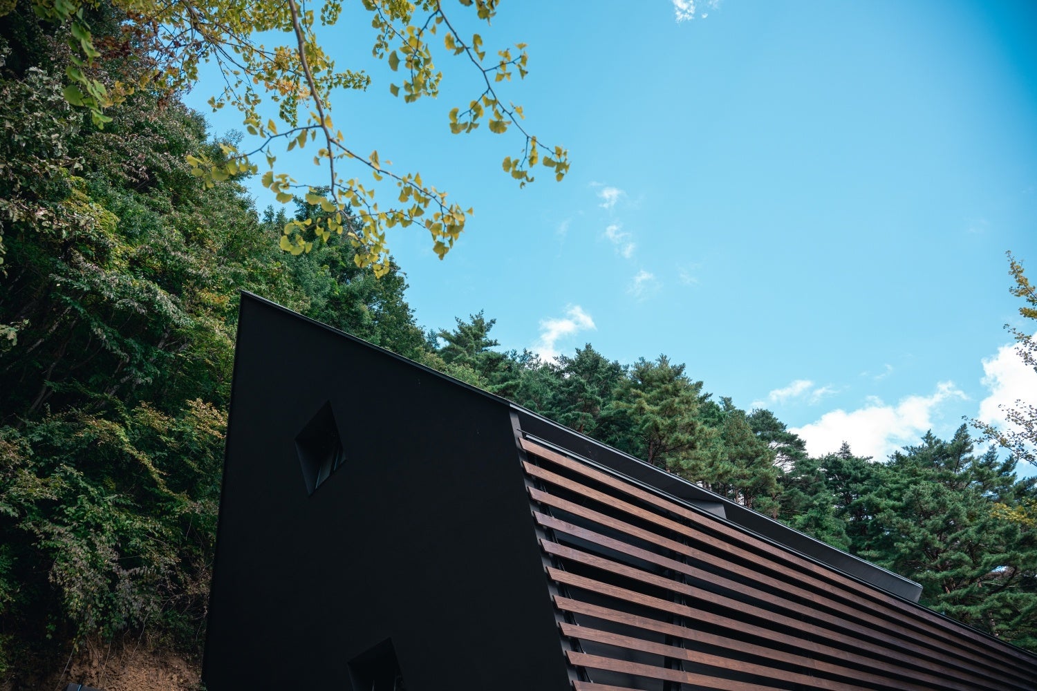建築と自然、そして木が、互いの存在を静かに確かめ合うように響き合う。