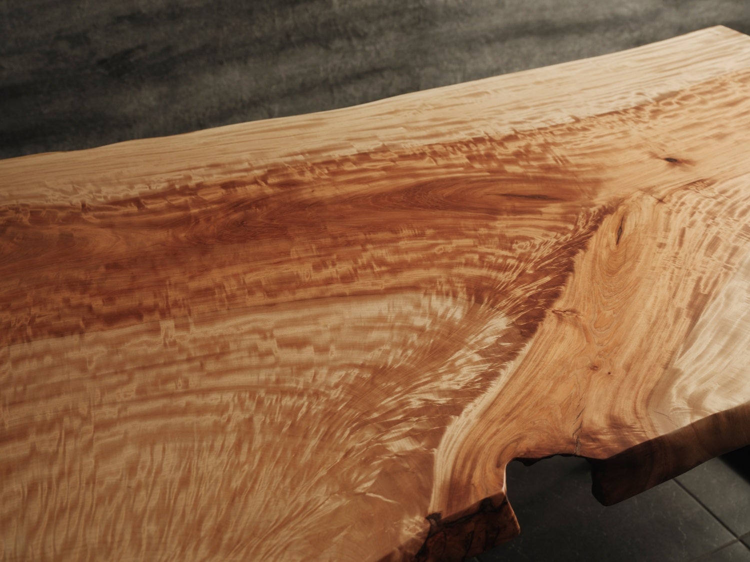 その木目は、まるで時間そのものを刻むように深く、光を受けてわずかに息づいている。