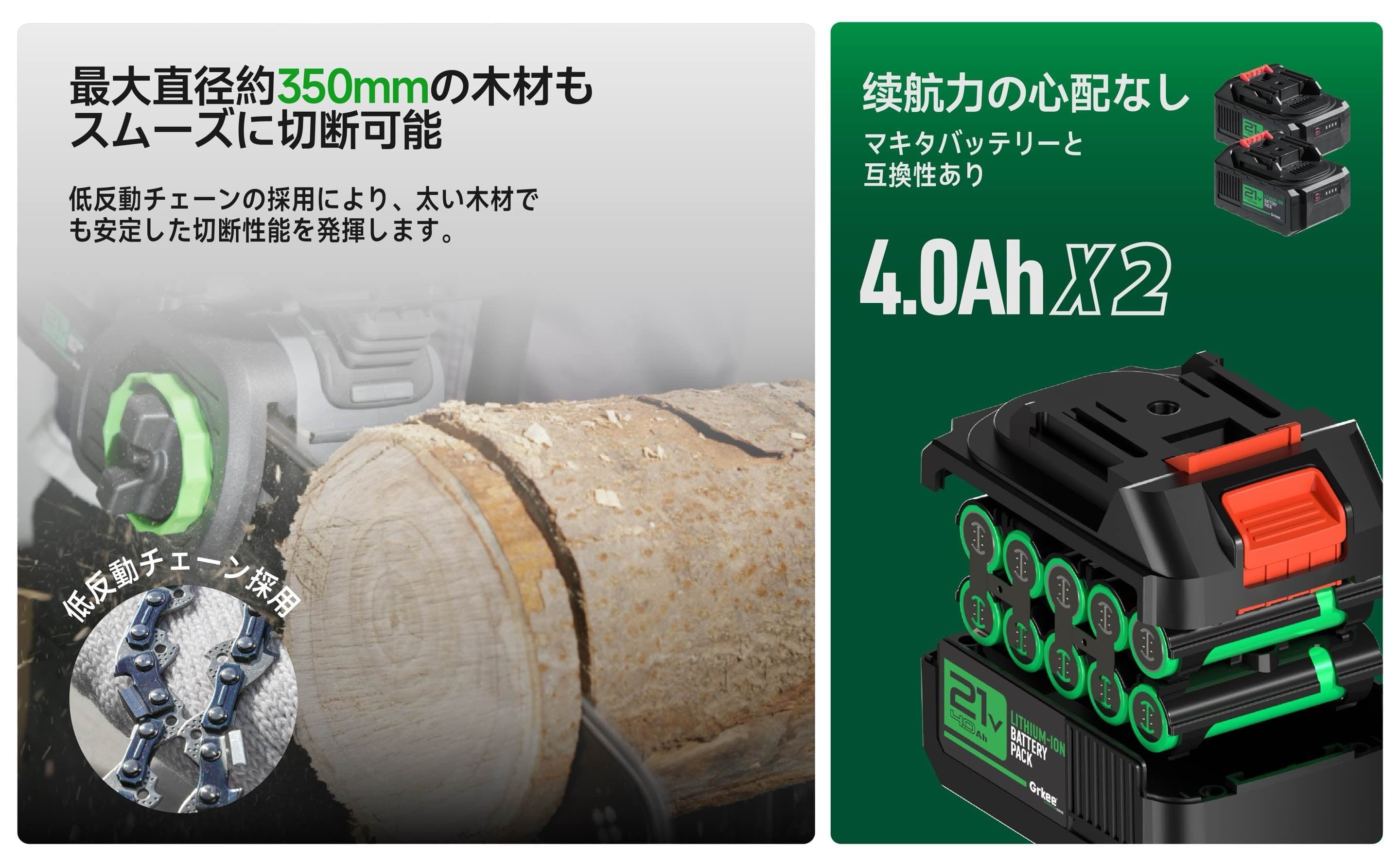 高トルク・高速切断・長時間駆動を実現し、安全性も強化した新世代コードレスチェーンソー