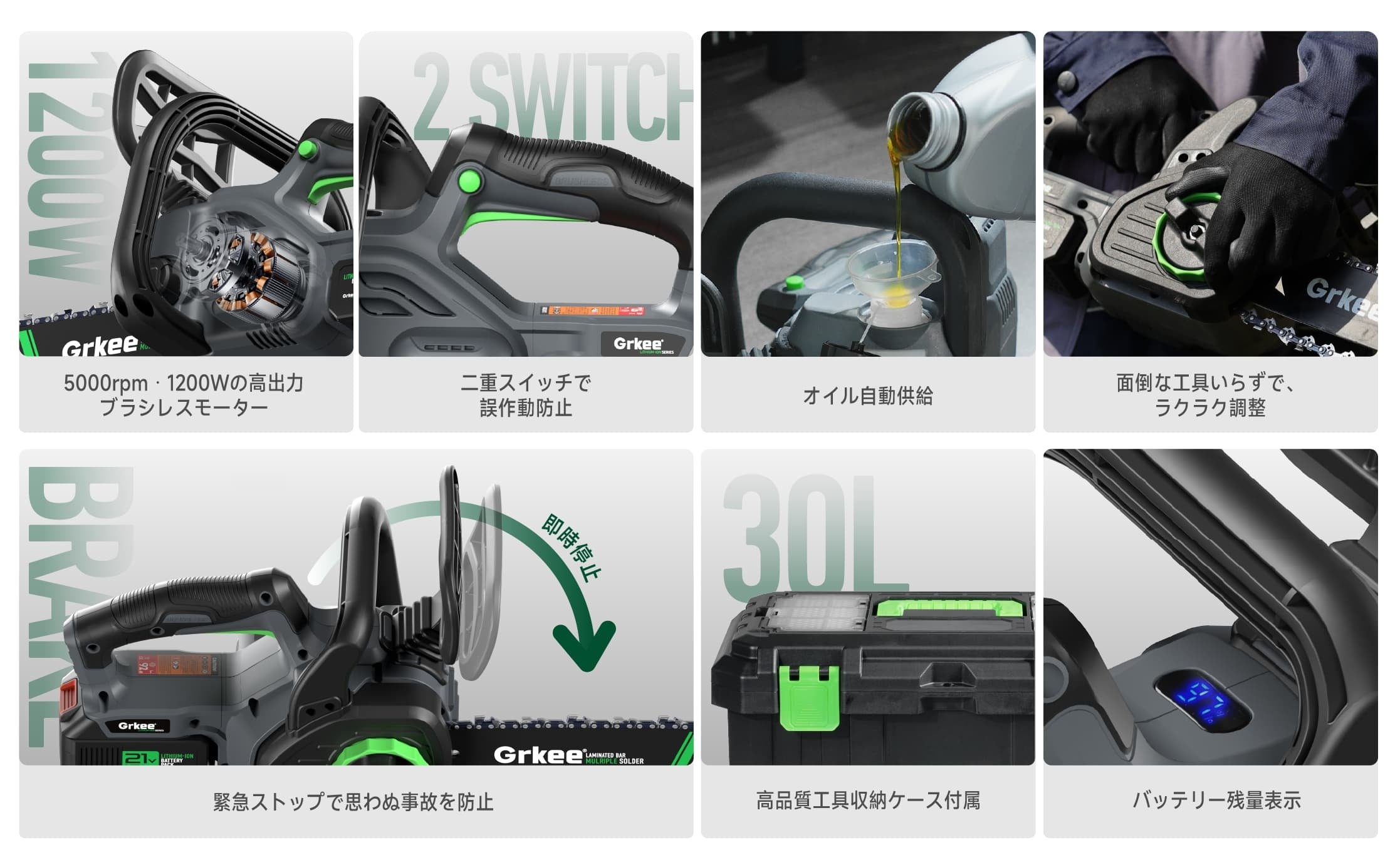 【Grkee】1200W無刷モーター搭載、12インチ充電式チェーンソー新登場 ── DIY・薪割り・枝切り作業をもっと効率的に