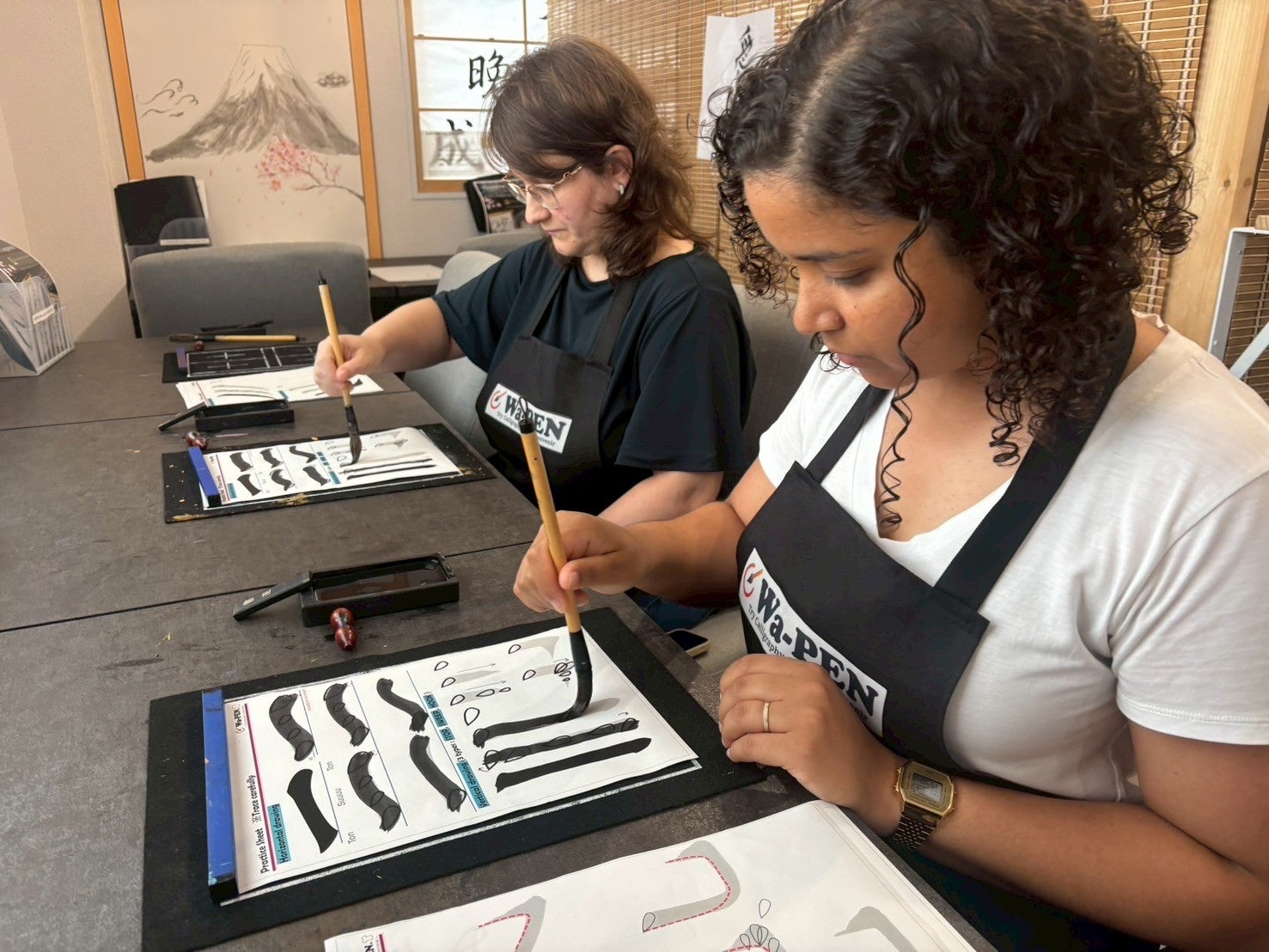 また、書道の歴史や文化的背景を紹介するビデオも用意されており、日本文化への理解を深めながら体験できるのも魅力のひとつ。書道を通じて、日本と自分の文化をつなげる時間は、まさに“文化交流”そのものです。
