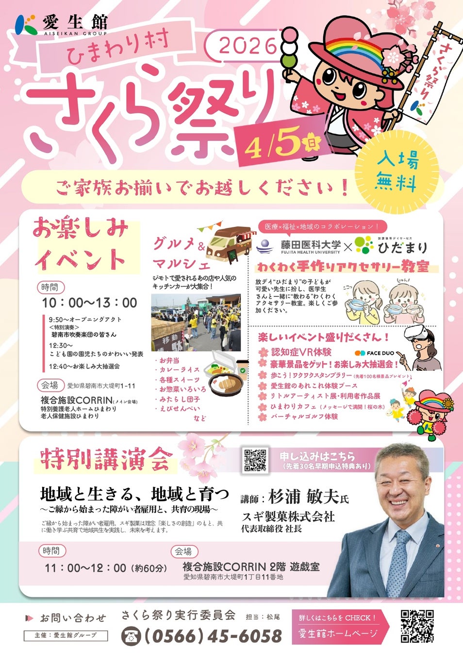 医療・介護・福祉事業を展開する愛生館グループ(以下、愛生館)は、2026年4月5日(日)に 愛知県碧南市の複合施設CORRINにて「ひまわり村さくら祭り2026」 を開催いたします。