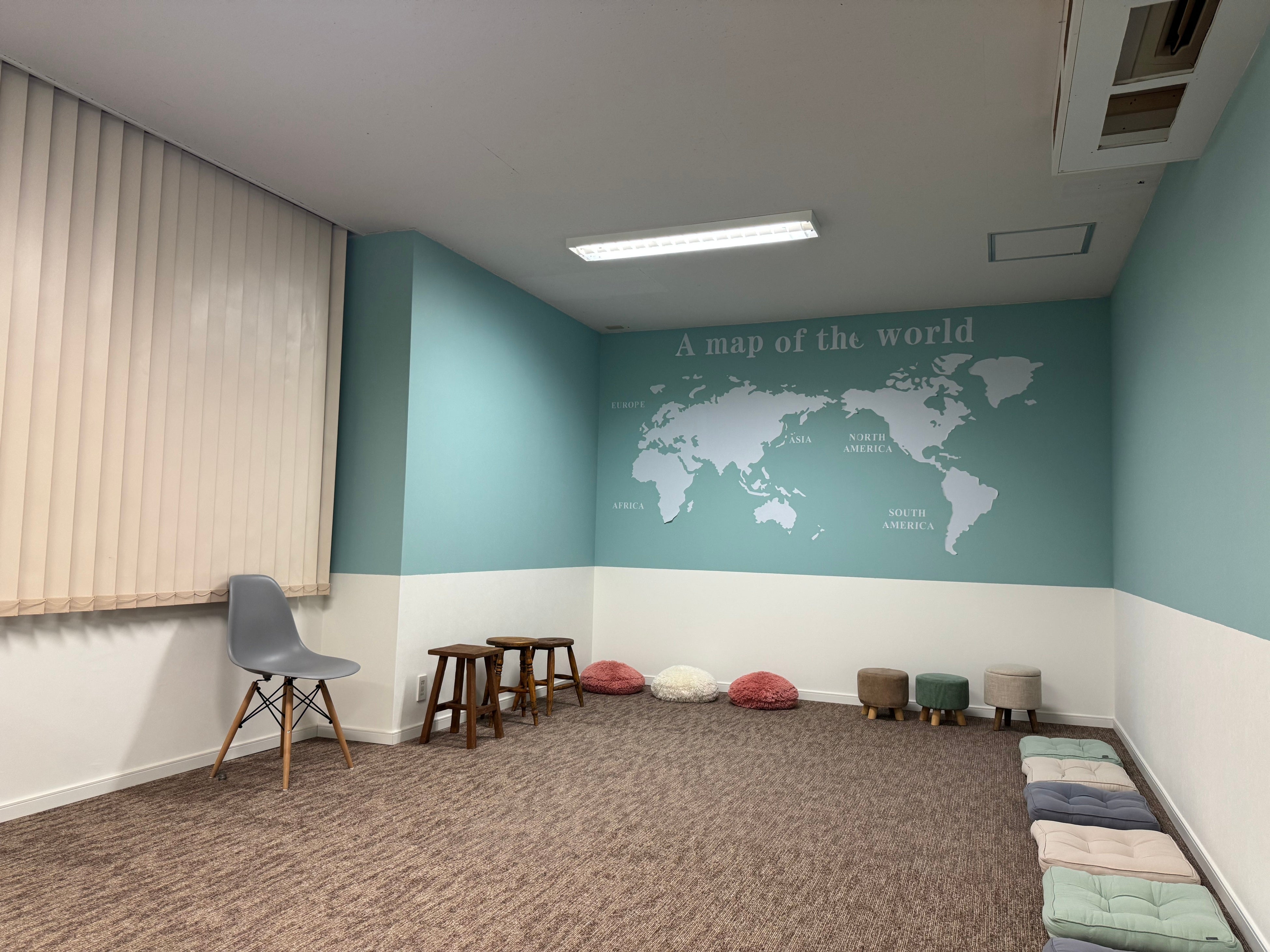 教室には固定の机を置かず、クッションやスツールを配置。おやつを食べても寝転んでもOKという自由な空間で、子どもたちはリラックスして、学習意欲を自発的に引き出していきます。