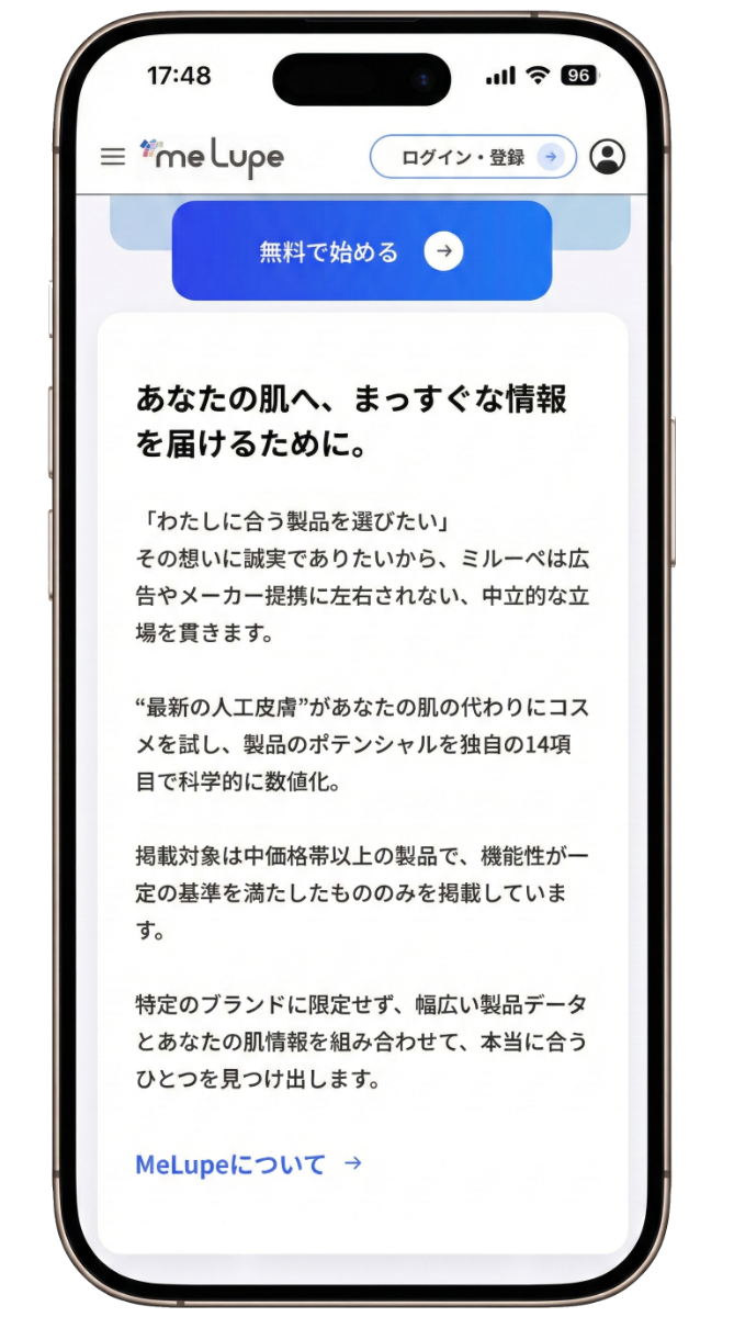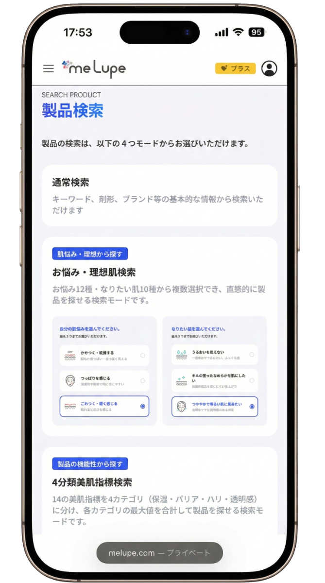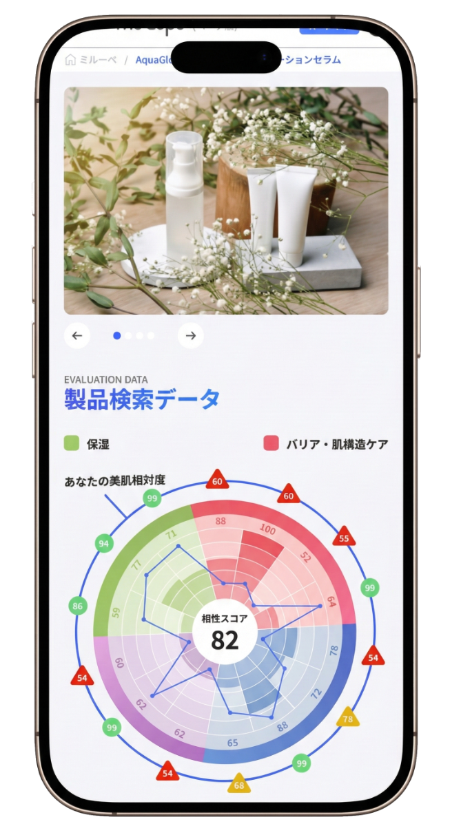 スキンケア製品がうたえる効能は薬機法により21種類の表現に限定されています。この制限により、ユーザーは製品ごとの違いを客観的に把握できず、感覚や口コミに頼って選ばざるを得ない状況が続いてきました。しかし肌状態は人によって異なり、同じ製品でも得られる結果は大きく変わります。「自分に合う製品がわからない」多くのユーザーが抱えていたこの課題に対し、ミルーペは“科学的な選択基準”を提供することを目指しました。