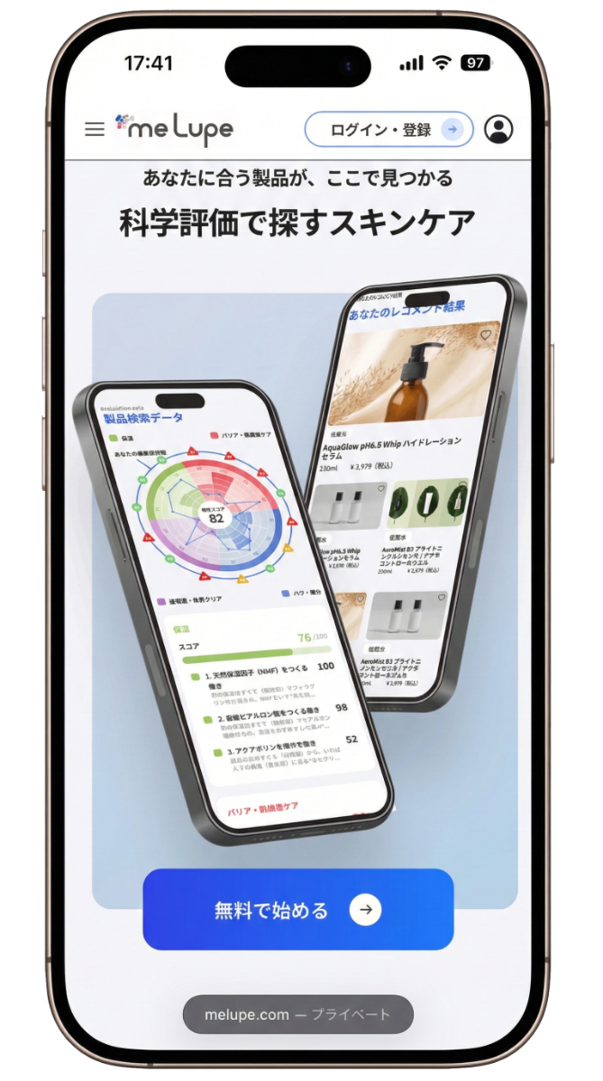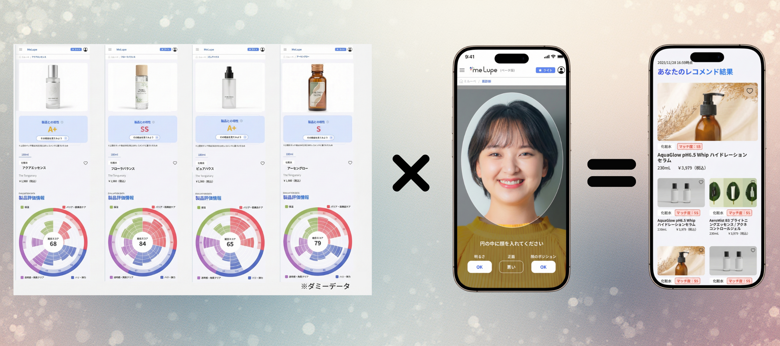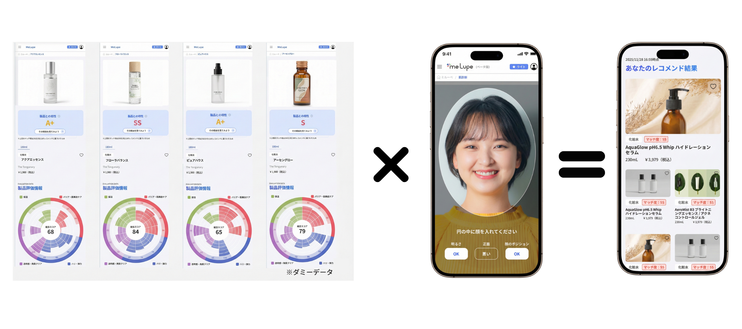 株式会社ミルーペ(所在地:京都市中京区、代表取締役:中峯良介)は2025年12月5日より、スキンケア製品の機能性を科学的に数値化し、AIによる肌解析と組み合わせて最適なアイテムを推奨するサービス「MeLupe(ミルーペ)」β版を開始します。
