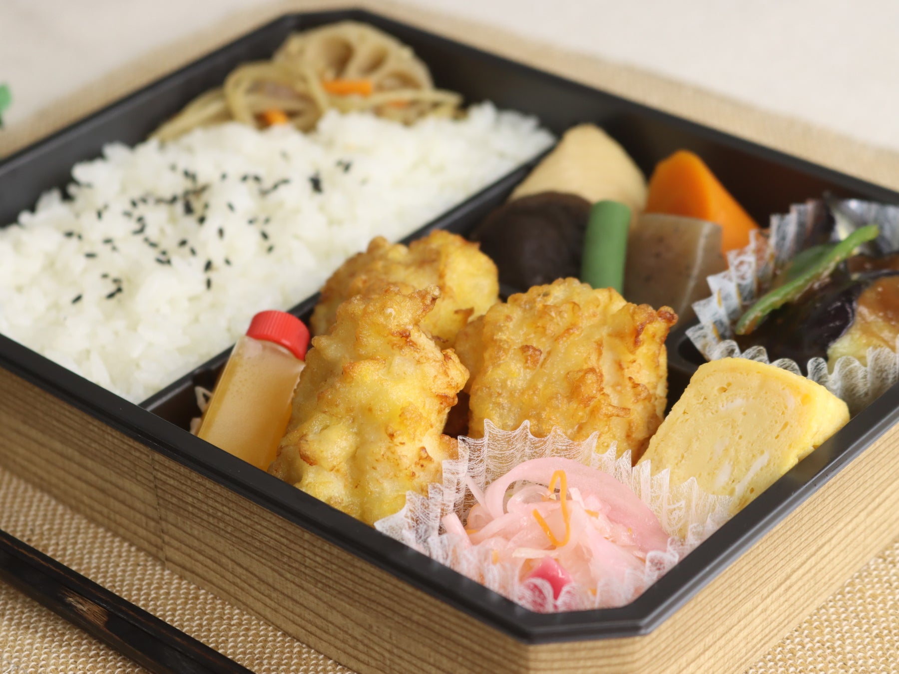 今回の弁当に入る「空(から)上げ(※)」は、静岡県産の温州みかんと知久屋自家製の塩こうじで鶏もも肉を漬け込み、風味豊かに揚げた特製からあげです。さらに、同じく静岡県産温州みかんを使った特製みかん酢ソースを別添え。こちらをかけていただくことで、後味さっぱりとお楽しみいただけます。その他にも、知久屋自慢の手作り副菜も入っていますので、栄養バランスもばっちりです。