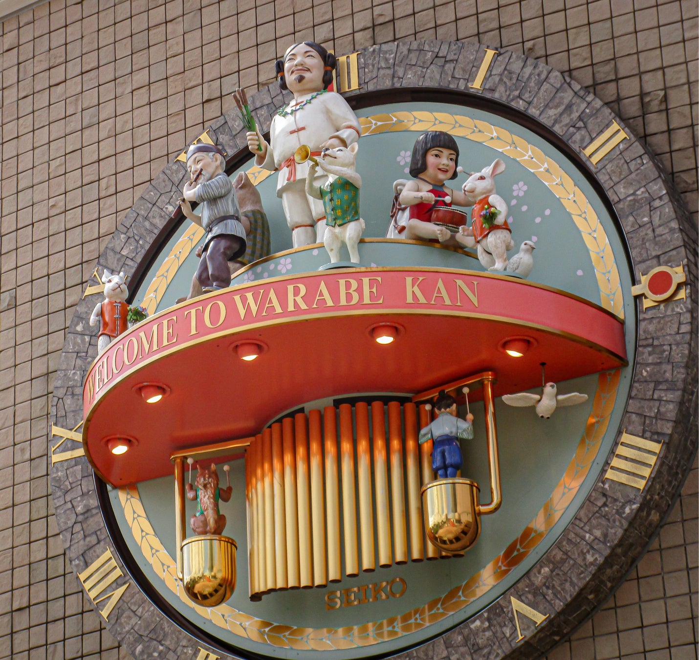 大型のからくり時計は、1980年代から1990年代にかけて、日本経済の成長と歩調を合わせるように、特にバブル期には自治体による公共投資も後押しとなり、全国の公共施設や商業施設に次々と設置されて大ブームを巻き起こしました。コンピューター制御によって多彩な演出や表現が可能なからくり時計は、地域のシンボルとして人々に親しまれています。