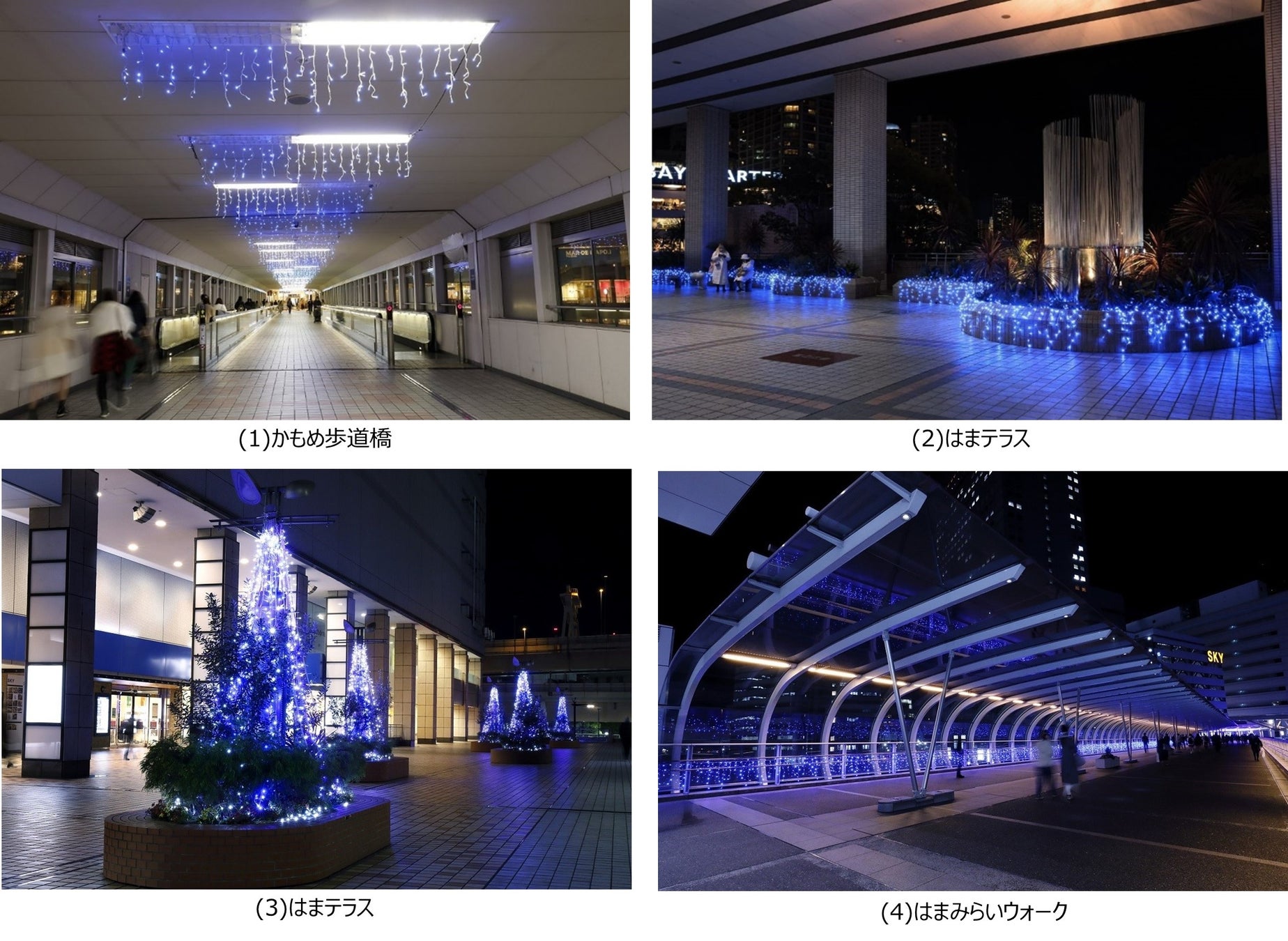 実施エリア:横浜駅東口、はまみらいウォーク、みなとみらい歩道橋、グランモール公園、帆船日本丸(船体整備期間は除く)など各エリア