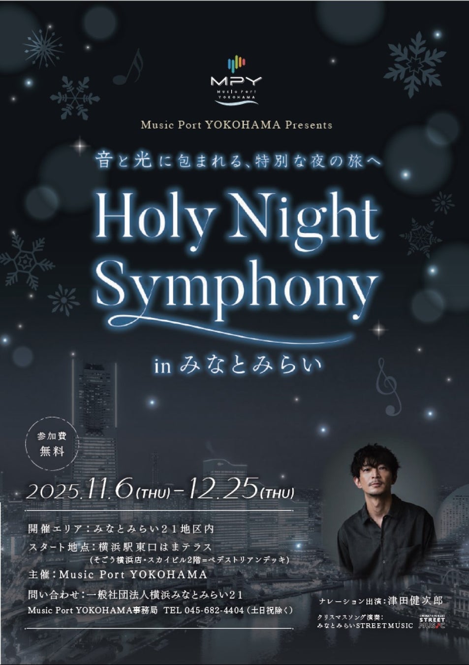 また、イルミネーション開催期間中、様々なイベントを開催いたします。本点灯を開始する11月6日(木)から12月25日(木)まで、Music Port YOKOHAMA委員会主催で津⽥健次郎⽒のナレーションとクリスマス音楽とともにイルミネーションを楽しめる「Holy Night Symphony in みなとみらい」が開催されます。11月28日(金)~12月25日(木)には、クリスマスの装飾が施された多数のヒュッテ(木製の露店)が並び、クリスマスならではのお菓子や食べ物等が販売される「みなとみらい Christmas Market 2025」を協力企業のご協力により初開催いたします。12月20日(土)には、昨年好評いただいた「西区キャンドルアート 2025」もお楽しみいただけます。