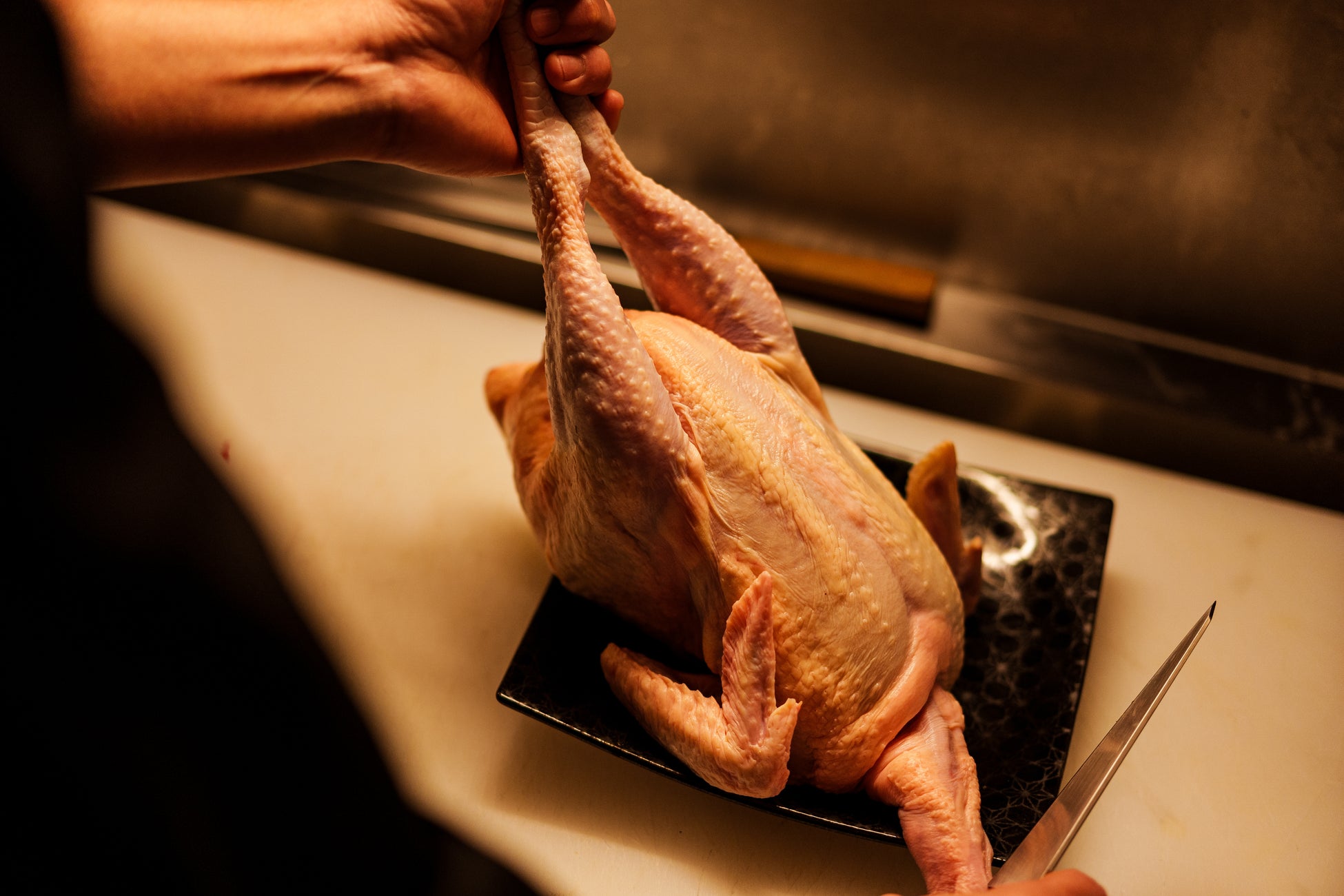 本コースは、オーナーが仙台で味わった“セリ鍋”の忘れられない余韻から着想を得て誕生しました。日本一とも称される秋田県産『三関せり』の香りと根の力強さに惚れ込み、当社独自の技法で鴨との相性を探求。さらに、料理長は飲食業界でも稀有な食鳥処理衛生管理者の資格を持ち、内臓付きの鶏や鴨を丸ごと仕入れて店内で捌くことで、他店では再現できない鮮度と安全性を実現しています。