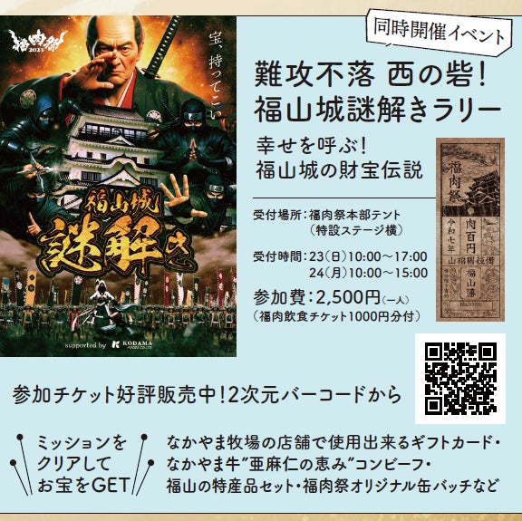 肉・歌踊り・謎解きの現代の宴。福山城を舞台に『福肉祭2025』開催決定。11/23(日)-24(月)の2日間にて。新しい観光の形を