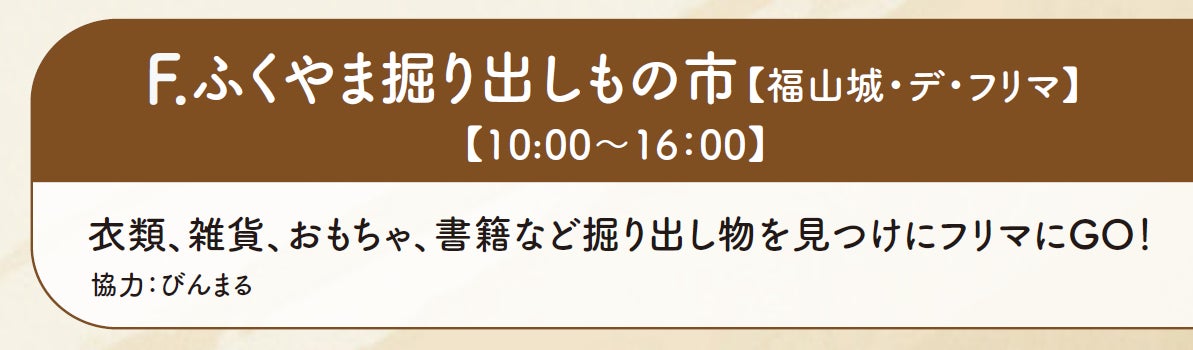 ⑧ふくやま掘り出しもの市:衣類・雑貨・おもちゃ、書籍などのフリマ開催