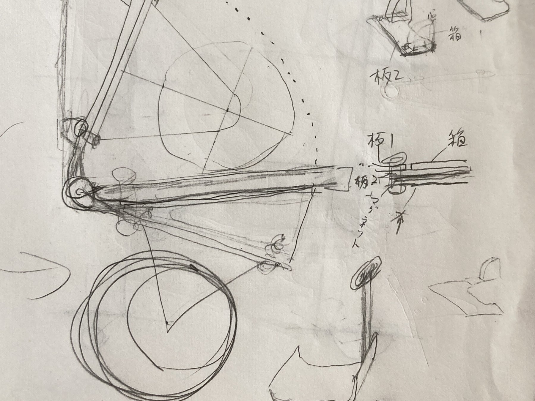 理想の形を追い求め、鉛筆でのスケッチや段ボールでの試作といった手探りの奮闘が続きました。