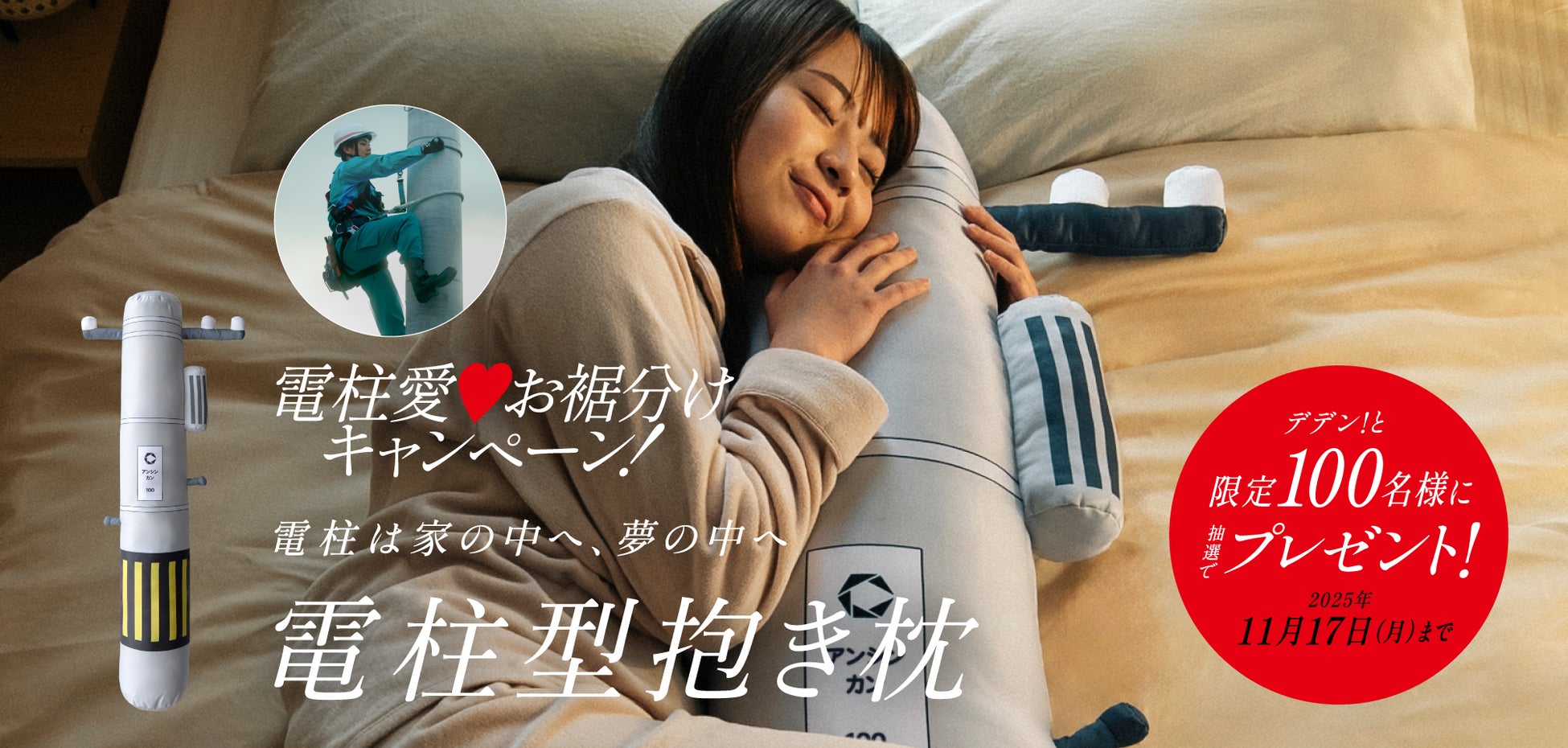 中国電力ネットワーク株式会社(本社:広島市)は、2025年10月27日(月)より、地域の皆さまに“電気”と“元気”をお届けするユニークなプレゼント企画「電柱愛♥お裾分けキャンペーン!」を開始いたします。本キャンペーンでは、当社が日々の業務で大切にしている「電柱」への愛を形にした、電柱型抱き枕を抽選で100名様にプレゼント。「変なアイテムw」と笑っていただけることが、私たちの何よりの喜びです。