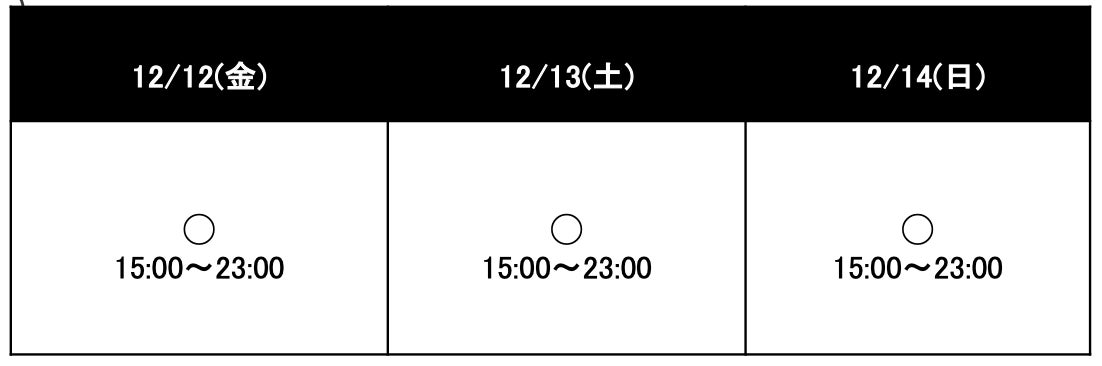 [⽇程]2025年12⽉12⽇(金)〜12⽉14⽇(⽇)