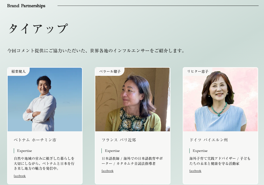 企業が自ら情報を発信できる環境を整え、商品紹介、動画、インフルエンサーコメント、越境ECサイトへのリンクを備えた、総合的な発信拠点としています。