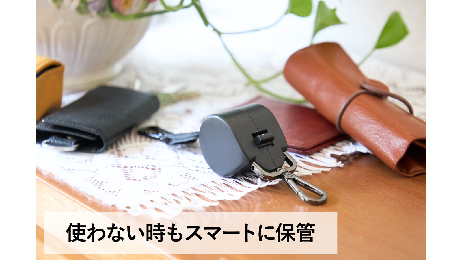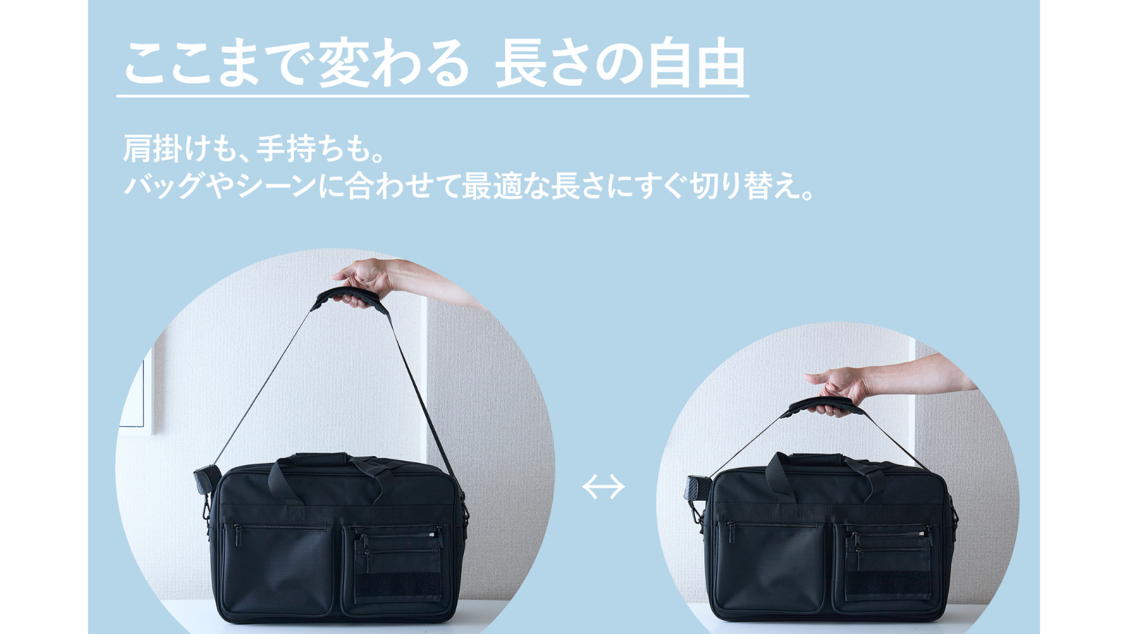 自動巻取りで“垂れない”。片手で長さが瞬時に決まる、新発想のショルダーベルト。