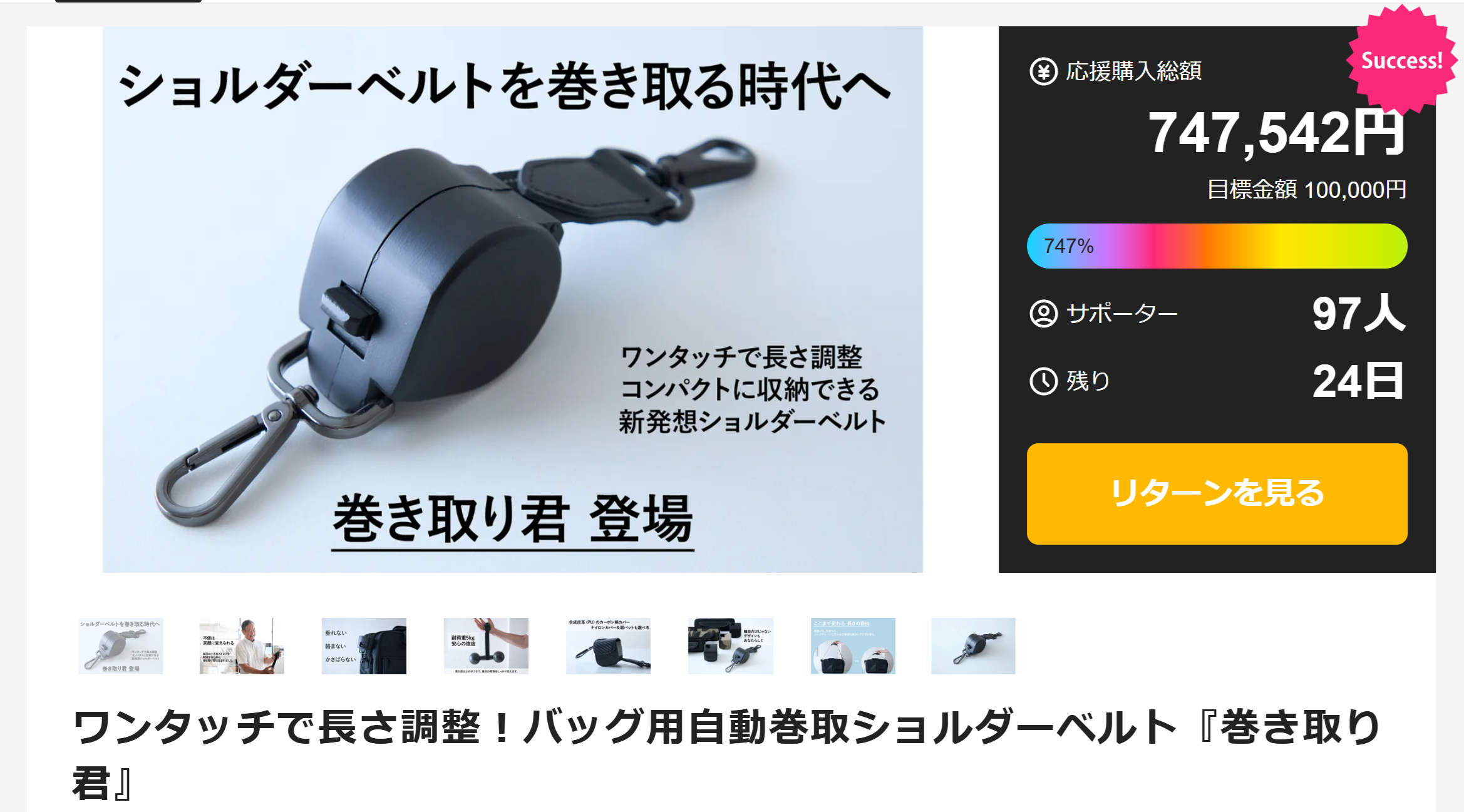 クラウドファンディング開始18時間で完売。“自動巻取り”ショルダーベルト『巻き取り君』、10/20に再開―創業60年以上の墨田発・革製品メーカーが開発